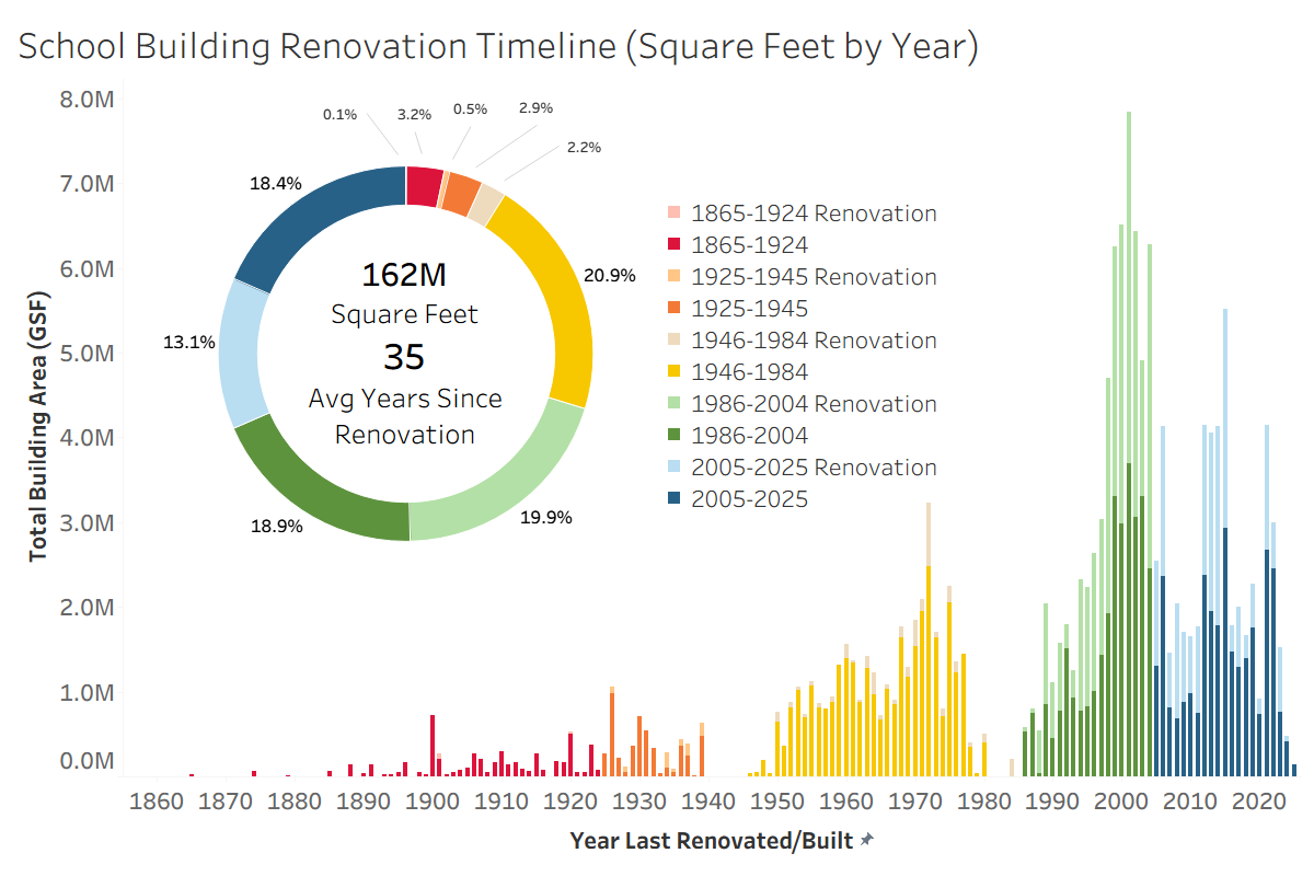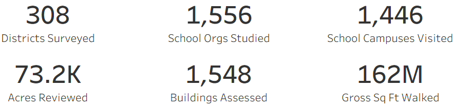 For 2025, the School Survey included site visits to 1,548 buildings across 1,446 campuses and the compilation of existing data at 121 additional schools currently in the MSBA’s Core Program pipeline. Assessments were completed during the 2024-25 school year.